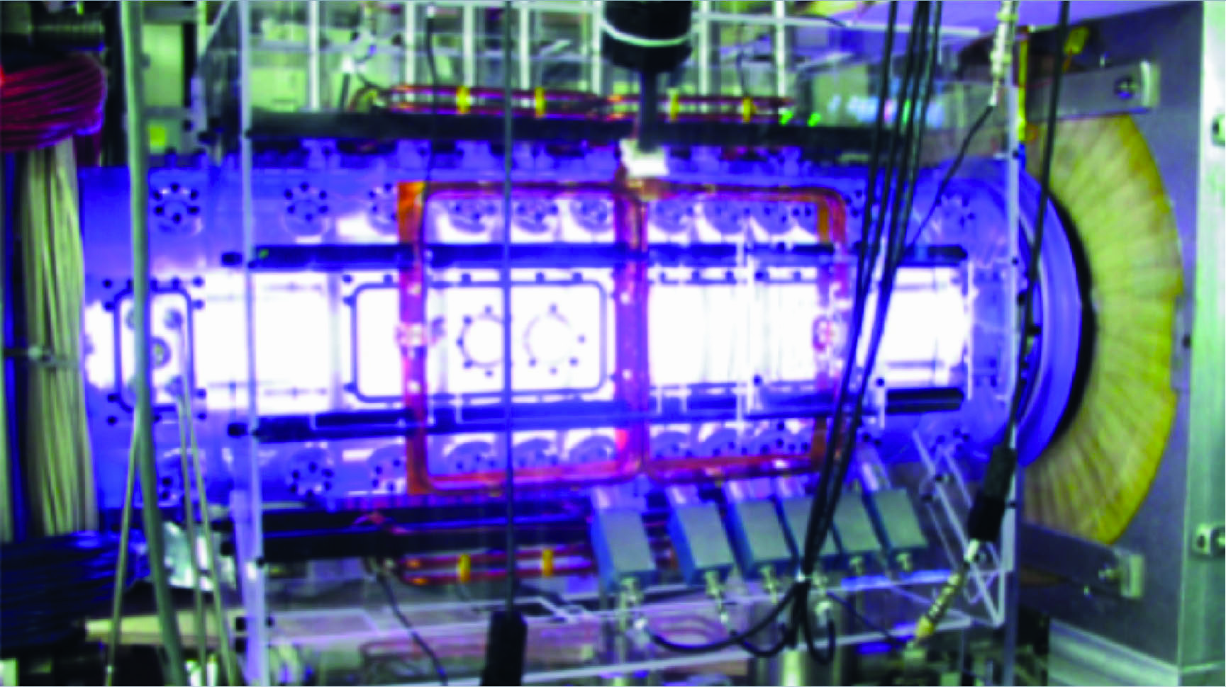 La Fig. 4a montre la configuration en « Champ Inversé » de Princeton mise en œuvre dans le prototype PFRC-2, ici pendant son assemblage. Ils ont fini de le construire maintenant. Ils n’ont pas encore atteint la puissance maximale de la fusion mais ce travail est un contrat avec la NASA à travers le « Programme des Concepts Innovants et Avancés », qui a pour but de financer les projets pouvant être rentables sur les 10 à 100 prochaines années.