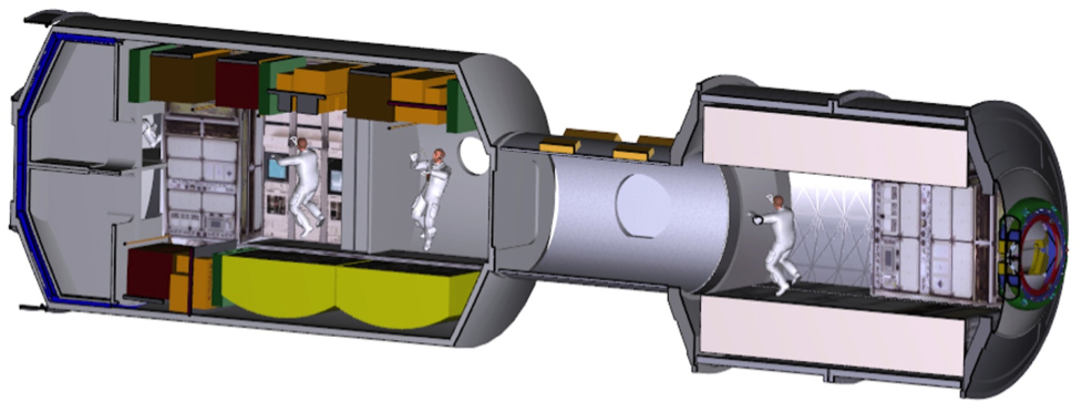 Le DSH, comme vous pouvez le voir sur la Fig. 6, est comme une petite station spatiale. Il a un laboratoire expérimental, ainsi que des chambres d’exercice physique.