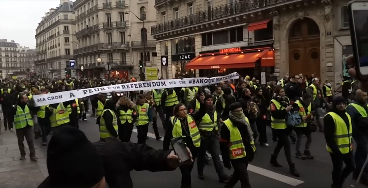 Solidarité & progrès, qui soutient le bien-fondé de la démarche des GJ depuis le début, est pleinement mobilisé pour faire circuler l’idée de rétablir une banque nationale capable d’émettre du « crédit productif public », comme on l’appelait pendant les Trente Glorieuses, qui nous permettrait de ne plus être dépendants des marchés financiers. Le samedi 5 janvier, l’une de nos militantes, qui portait avec d’autres gilets jaunes une banderole proclamant « Macron a peur d’un référendum sur la banque nationale », a été interviewée par Le Média à ce sujet : « La création monétaire doit être dans les mains des représentants du peuple. Si on ne peut pas investir, si on ne peut pas avoir ce levier de la création monétaire, on fait la manche sur les marchés. C’est ce que la France fait tous les jours, toutes les semaines ; et les taux d’intérêts cumulés depuis 30 ans, c’est 1400 milliards ! »