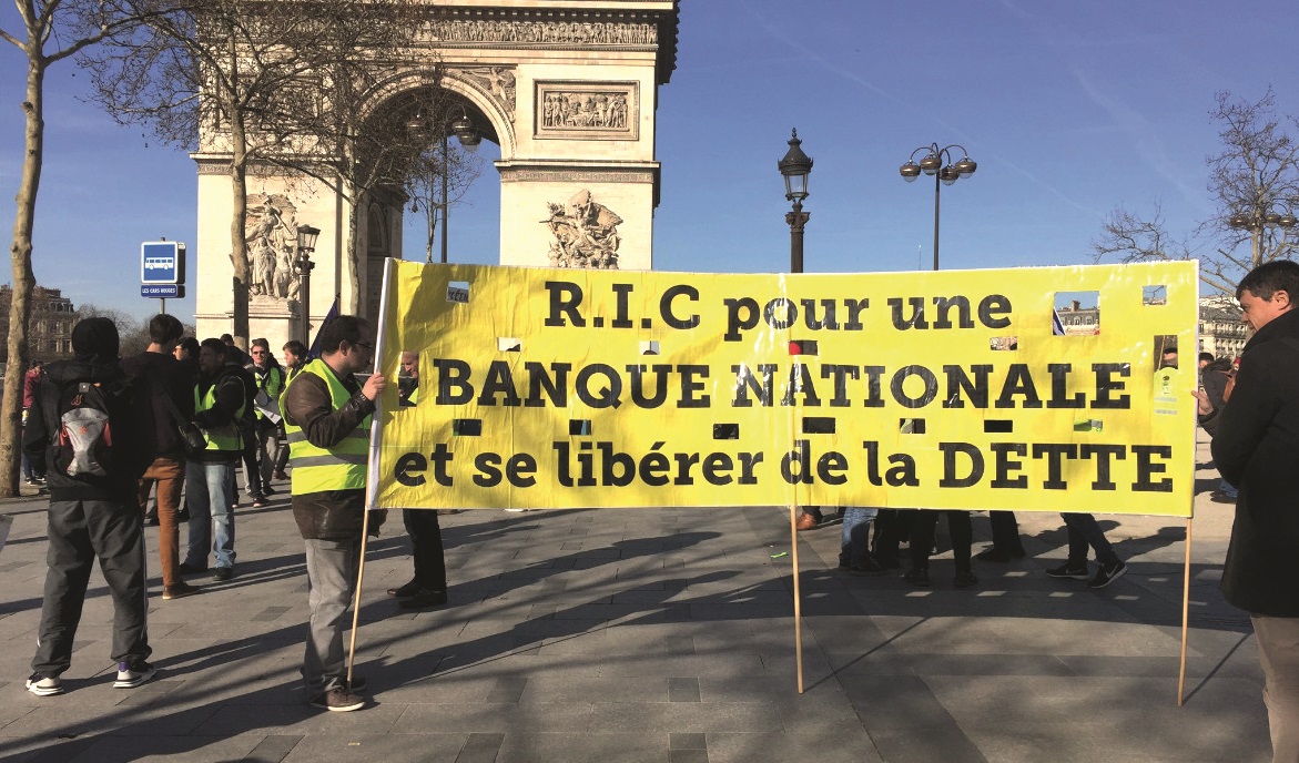 On a donc eu un grand succès avec notre banderole « Un RIC et une Banque nationale pour se libérer de la dette ». Pourquoi ? Parce que les gens sentent de plus en plus qu’on utilise la dette pour faire passer une politique d’austérité et de démembrement des services publics. Or si cette question de la monnaie est obscure pour beaucoup de gens, ils commencent de plus en plus à comprendre qu’elle est un enjeu de pouvoir. Ils voient que si le pays veut avoir une vision à long terme, un aménagement du territoire, s’il veut avoir les moyens de l’égalité territoriale (les GJ sont quand même avant tout un mouvement de la France périphérique qui réclame l’équité de traitement avec les territoires urbains) et bien, il va falloir des leviers tels que la création monétaire. Alors soit les gens le comprennent directement et sont très contents de nous voir dans les manifs ou sur internet, soit ils sont en phase de réflexion par rapport à cela et viennent en disant « Ça, ça m’intéresse ! ».