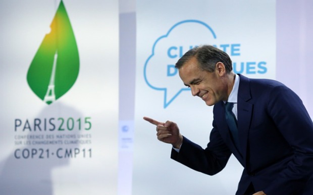 Invité le 29 septembre 2015, c’est-à-dire à la veille de la COP21 de Paris, pour une prise de parole devant les cadres de l’assureur britannique Lloyds à Londres, Carney estima que, bien que ce ne soit pas aux banques centrales d’imposer des choix politiques, elles doivent être prêtes à toute éventualité.