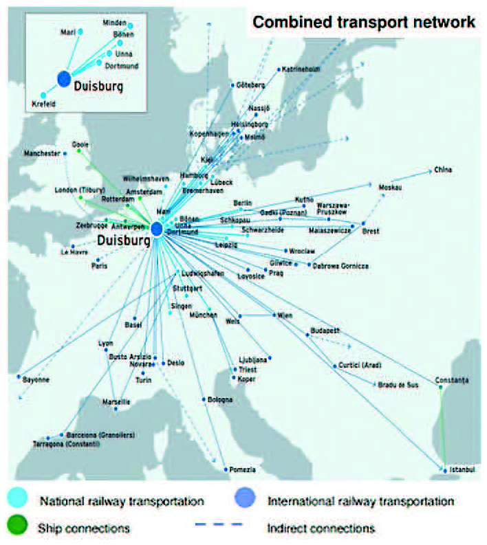 Le trajet le plus fréquenté est Chongqing-Duisbourg, avec 39 trains arrivant chaque semaine dans ce qui reste le plus grand port intérieur d’Europe. Parmi les villes d’Europe desservies par des convois ferroviaires chinois : Hambourg, Nuremberg, Lyon, Madrid, Vienne, Prague, Trieste, Budapest, Tilburg, Anvers, Rotterdam et surtout Duisbourg, qui sert de hub de distribution vers d’autres destinations.