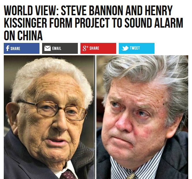 C’est le site Breitbart News, le média choc de l’alt-right développé par Bannon, avec l’argent du milliardaire Robert Mercer, qui précise que « Steve Bannon et Henry Kissinger conçoivent un projet pour sonner le tocsin à propos de la Chine ».