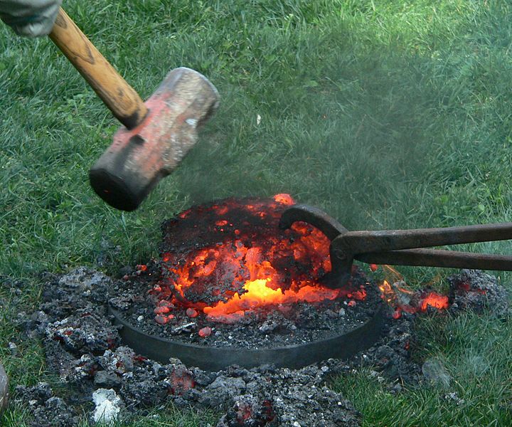 Pour éliminer ces dernières, l’on va marteler la loupe et souder les atomes/particules de fer entre eux/elles. Grâce à un long travail de martelage, les forgerons indiens et armuriers syriens, chauffant leurs fours avec du charbon de bois, vont réussir à durcir le métal en y incorporant un peu de carbone.