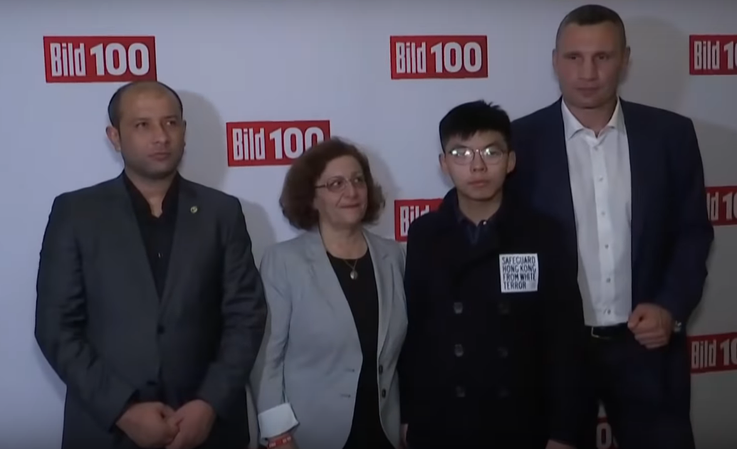 Un peu partout en Occident, le tapis rouge est déroulé devant le jeune Joshua Wong, érigé en leader des contestations de Hong-Kong. À Berlin, il a été reçu dans un événement organisé par Bild 100, le groupe de presse d’Axel Springer, en présence du ministre allemand des Affaires étrangères, Heiko Maas, de l’ambassadeur américain Richard Grenell, du maire de Kiev Vitali Klitschko, l’une des figures de la révolution de Maïdan, et du chef des « Casques blancs », Raed Al Saleh (photo en début d’article).