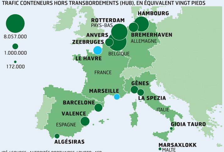 Oui, puisque aujourd’hui tout le commerce mondial transite par les conteneurs. Or, deux conteneurs sur trois qui entrent ou sortent de France passent par trois ports qui sont, certes, au sein de l’UE, mais sont néanmoins étrangers, puisqu’il s’agit d’Anvers, de Hambourg et de Rotterdam.