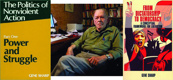 Il existe une vidéo d’un discours prononcé par Gene Sharp en 1990, que l’on peut voir sur YouTube, qui parle essentiellement de résistance sur un ton monotone. Il n’y a aucun contenu, mais cela n’a pas empêché cette vidéo de se propager dans les pays ciblés par les révolutions de couleur autour du globe.