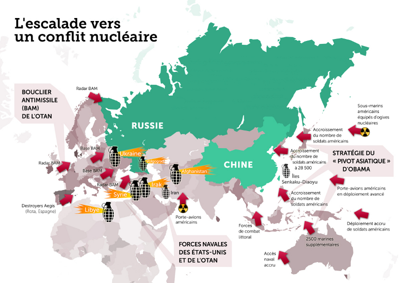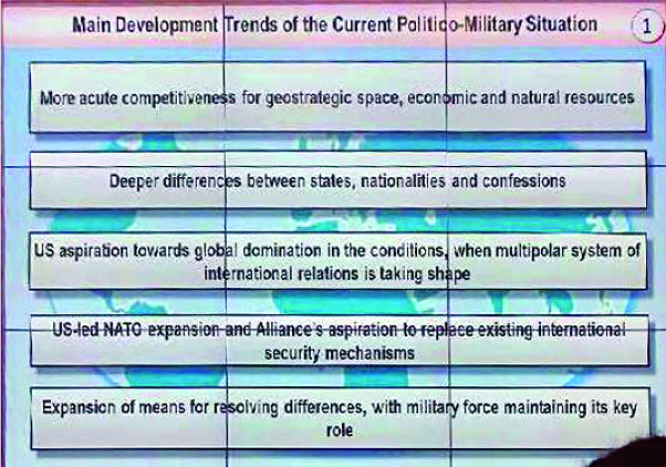 Déjà, il y a deux ans, lors de la Conférence de Moscou sur la sécurité, le président Medvedev avait averti que la politique occidentale consistant à utiliser l’ingérence humanitaire conduirait à des conflits régionaux, incluant l’usage d’armes nucléaires. Le général Nikolaï Makarov, alors chef d’état-major, avait déclaré que la Russie n’accepterait pas que les Etats-Unis poursuivent la construction du bouclier antimissile (dans ses troisième et quatrième phases) car cela leur donnerait une capacité de première frappe, laissant la Russie sans défense.