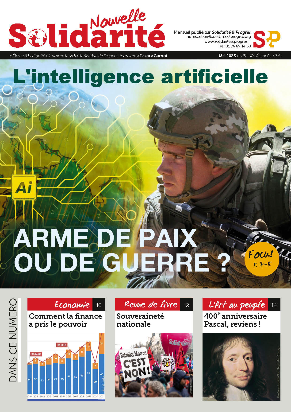 - Intelligence artificielle : arme de paix ou arme de guerre ? Avec l’arrivée en masse du logiciel conversationnel ChatGPT, l’Intelligence artificielle n’est plus « à nos portes ». Après avoir avalé le monde de la finance et de la guerre, la bête ne s’est pas seulement posée sur le canapé de notre salon mais s’empare de nos cerveaux, de nos esprits, et, si rien n’est fait pour la domestiquer, de nos âmes, c’est-à-dire ce qui nous anime. Notre enquête se portera sur l’origine du phénomène et surtout sur la catastrophique révolution militaire qu’elle implique.