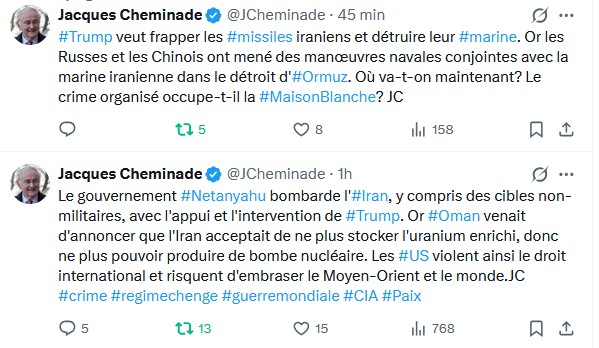 Dernières déclarations de Jacques Cheminade sur X (twitter)