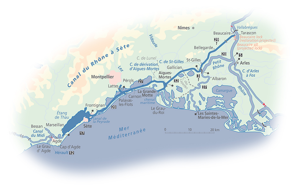 Tous ces éléments disparates deviendront les siècles suivants un réseau efficace articulé autour du Canal du Rhône à Sète, prolongation naturelle du Canal de Midi entrepris par Jean-Baptiste Colbert. (voir carte)
