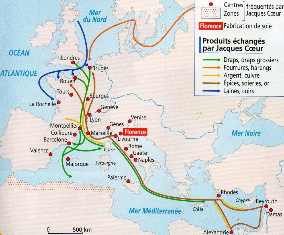 Cœur va approvisionner la Cour avec tout ce qu’on ne pouvait ni trouver ni fabriquer chez nous, mais qu’il pouvait faire venir d’Alexandrie, de Damas et de Beyrouth, à l’époque des points nodaux majeurs de la Route de la soie terrestre et maritime où il installe ses agents commerciaux, ses « facteurs ».