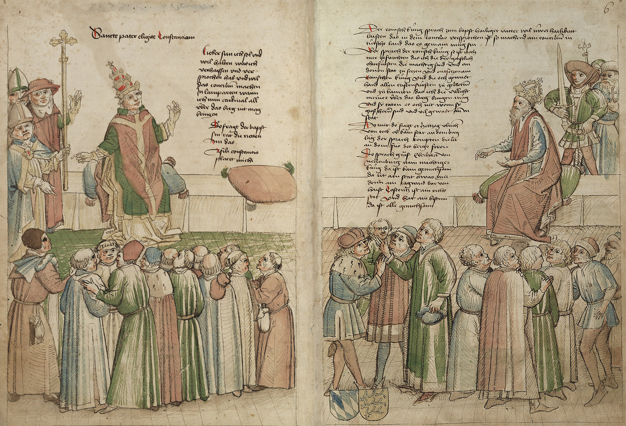 A Constance, le concile s’établit en institution permanente de l’Église, devant se réunir périodiquement et chargé du contrôle de la papauté. Le pape Martin V meurt peu avant l’ouverture du Concile de Bâle en mars 1431. Du coup, Gabriele Condulmer, soutenu par la France, est élu pape ce jour-là et prend le nom d’Eugène IV. Ce dernier se rend compte qu’il est tout simplement impossible d’unifier l’Occident chrétien tant que la guerre de Cent Ans perdure.