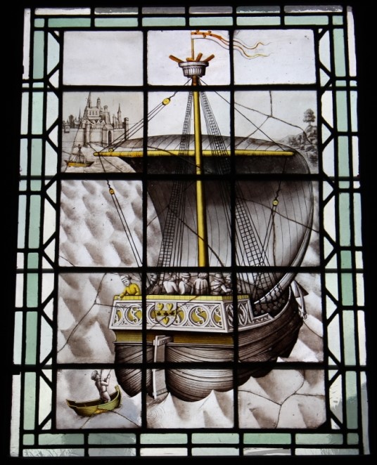 A en juger par le vitrail et le bas-relief au Palais de Cœur à Bourges, il s’agit plutôt de caraques, navires des mers du Nord dotés d’une grande voile carré et d’un tonnage nettement supérieur aux galéasses. Ce n’est pas tout !