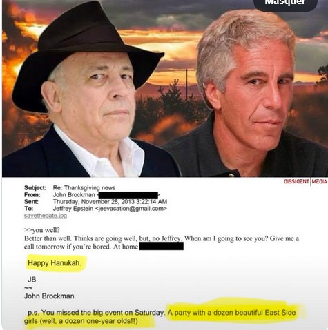 Et lorsque le sulfureux Steve Bannon vient solliciter le pédocriminel pour l’aider à débarasser le Vatican de l’encombrant pape François, Epstein prend fièrement un selfie avec son pote Steve, et on ne saura jamais lequel des deux fera chanter l’autre.