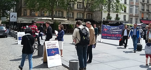 Ce samedi 18 juin, dans plusieurs villes européennes, des citoyens se sont mobilisés pour réclamer la sortie de l’OTAN et mettre en lumière le danger du prochain sommet de l’Alliance à Varsovie. Suite à une pétition non partisane initiée par Solidarité & Progrès le 25 mai, appelant François Hollande à faire sortir la France de l’OTAN, devenue bastion des va-t-en guerre et des néoconservateurs américains, d’autres partenaires rejoignent la mobilisation : Entrez en Résistance, Rassemblement du peuple souverain (RPS-Fiers), Alliance pour une France libre (AFL), Institut Schiller, Les clés de l’Europe. Début juin, l’initiative prend une dimension européenne en y associant des partis frères de S&P, en Allemagne (Bueso), en Italie (Movimento Solidarietà) et en Belgique (Agora Erasmus), et des amis en Suède, au Danemark, en Norvège, en Espagne et en Irlande.