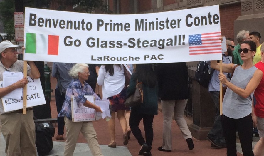 Le 30 juillet, nos amis militants du LPAC (Comité d’action politique de l’économiste américain Lyndon LaRouche) ont accueilli le Premier ministre italien Giuseppe Conte, qui rendait visite au président Trump à la Maison-Blanche, avec une banderole proclamant « Benvenuto Prime minister Conte – Go Glass-Steagall ! ». Plusieurs médias italiens ont couvert cette manifestation, dont l’agence italienne Vista, qui a publié une vidéo sur son site internet.