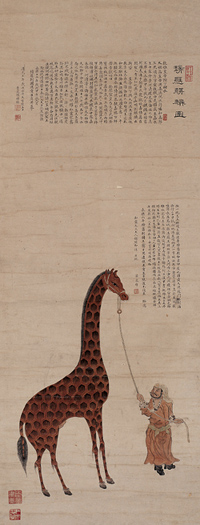 Comme tribut, les dignitaires africains offrent à Zheng He des zèbres et une girafe, un animal que les Romains appelaient le cameléopard (mi-chameau, mi-léopard).