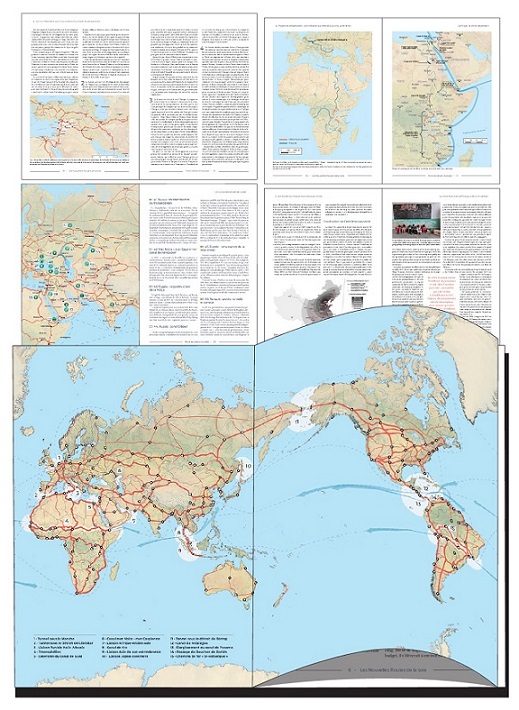 Voici la diapositive avec la carte du projet de Pont terrestre eurasiatique, devenu ensuite le Pont terrestre mondial, qui reste notre politique.