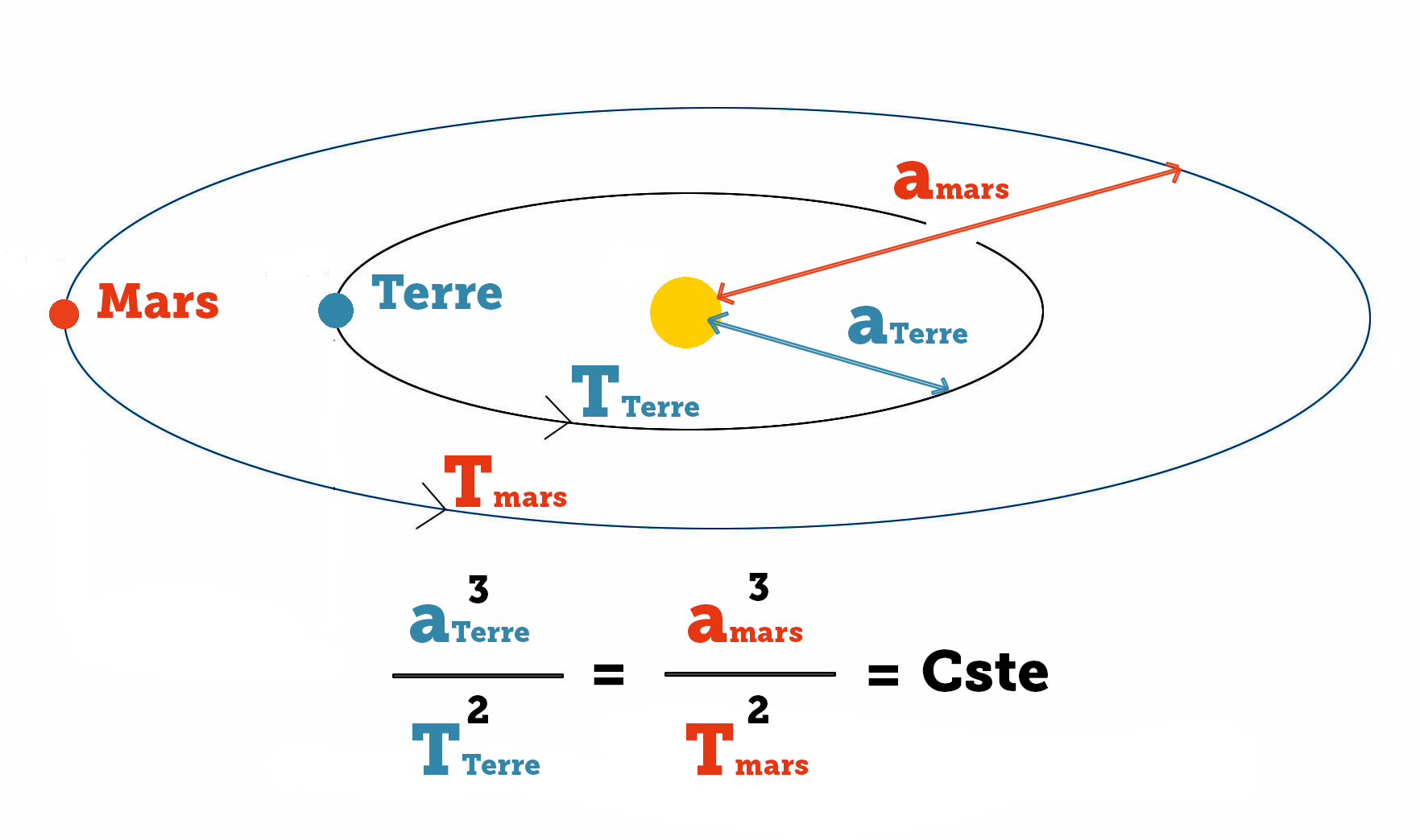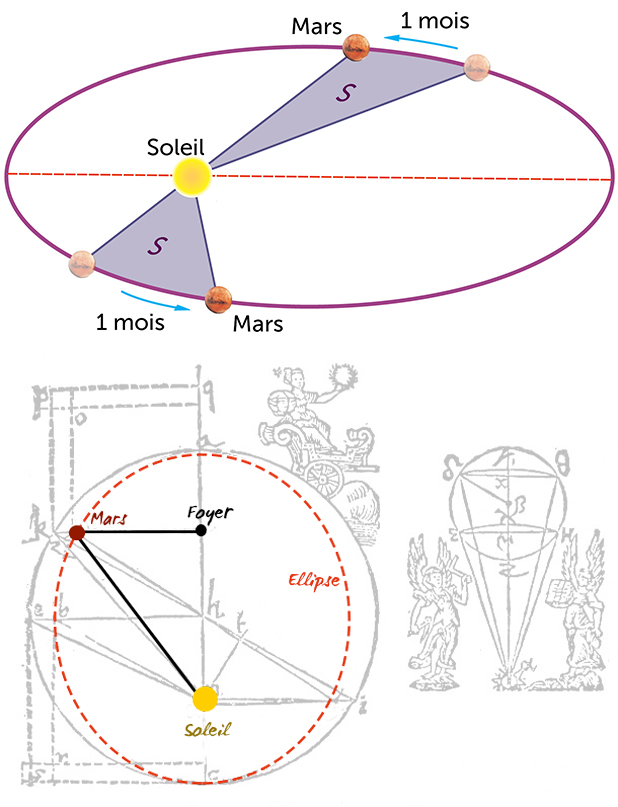 Il découvre alors la fameuse « loi des aires », stipulant que les planètes, vues du Soleil, doivent balayer des aires égales en des temps égaux, et détermine à partir de cette première loi la forme elliptique des orbites planétaires.