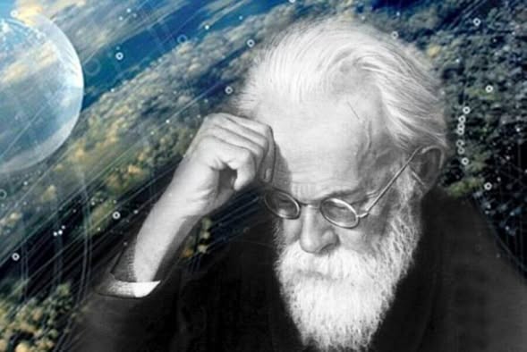 Pour le géophysicien russo-ukrainien Vladimir Vernadski (1863-1945), la vie est éternelle et indissociable du cosmos, et non de la seule Terre. Il voit la matière vivante comme un « phénomène cosmique » apparu ailleurs ou ayant toujours existé, façonnant l’environnement chimique des planètes. La biosphère entoure la Terre comme une « enveloppe saturée de vie », où organismes vivants et matière inerte interagissent constamment, indissociablement et de manière dynamique. L’étape suivante de l’évolution est décrite comme la transition de la biosphère à la « noosphère », où l’activité rationnelle humaine, la science et la technologie deviennent la principale force géologique qui façonne la planète. Vernadski était convaincu que l’avenir de l’humanité dépendait de la reconnaissance de cette unité, suggérant que la pensée humaine était un prolongement naturel des processus géologiques et cosmiques.