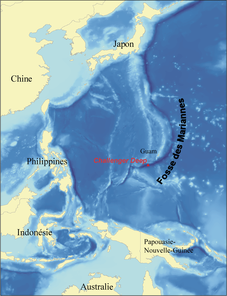 Challenger Deep, le point le plus profond de la planète, se situe à plus de 10 900 mètres au-dessous du niveau de la mer, à proximité des îles Mariannes, dans l’océan Pacifique. La pression y est 1100 fois plus forte qu’à la surface de la terre.