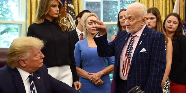 L’astronaute Buzz Aldrin, qui avait marché sur la Lune aux côtés de Neil Amstrong le 20 juillet 1969, a justement affirmé le 18 juillet, lors d’un événement à Washington, que les États-Unis, la Russie, la Chine, l’Inde, le Japon et l’Agence spatiale européenne devraient former une « alliance spatiale unie » pour retourner sur la Lune, développer les ressources sur place puis envoyer des hommes sur Mars. D’autres pays comme l’Inde et l’Australie pourraient s’y joindre par la suite. « On ne peut pas payer pour tout ça » a dit Aldrin à propos programme actuel de la NASA. « On doit apprendre plus de la Lune en y impliquant d’autres nations. On pourrait travailler tous ensemble pour voir ce qu’il faut vraiment pour pouvoir se rendre sur Mars ».