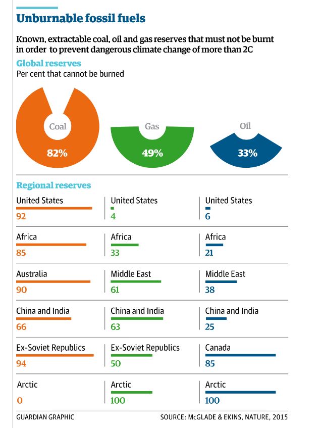 Ces affirmations furent confortées par une étude de l’University College de Londres (UCL) publiée dans la revue Nature. Les chercheurs britanniques, allant jusqu’au bout du raisonnement malthusien, ont calculé avec précision que pour rester en dessous de la barre d’une hausse de 2° Celsius, ce sont 82 % des réserves connues qui devraient rester dans le sous-sol !
