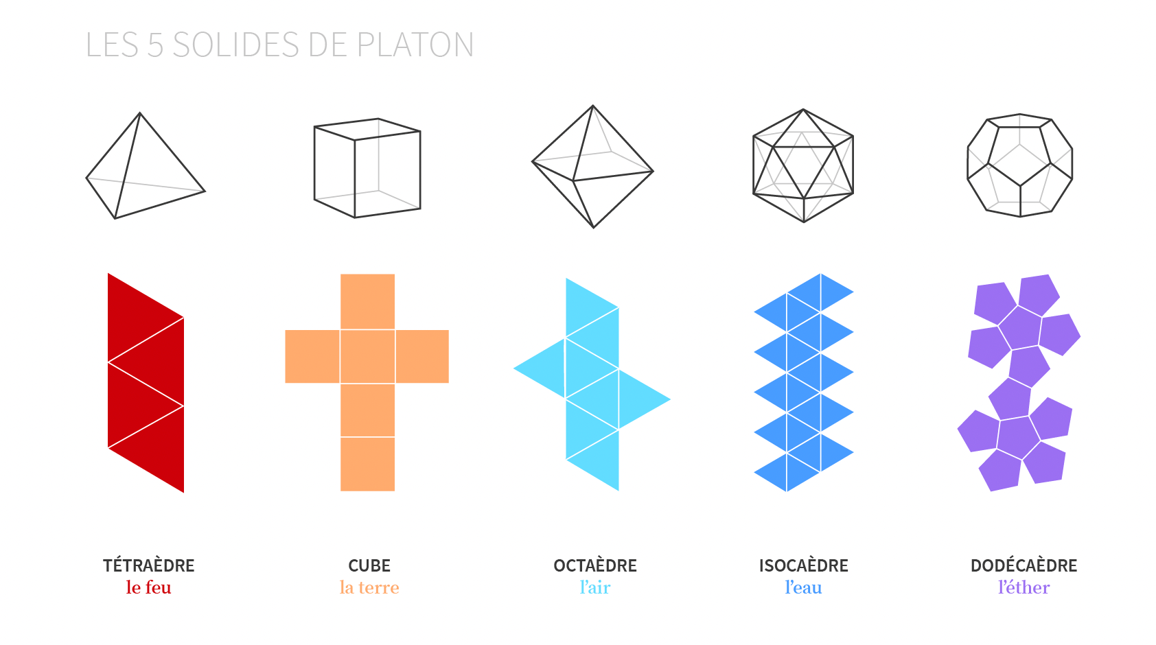Platon est le premier dans l’histoire qui ait découvert une union intelligible entre les deux domaines, celui de la vision et celui de l’ordonnancement harmonique naturellement déterminé du langage vocalisé. Platon nous montre, en faisant référence aux cinq solides platoniciens, qu’il existe des ordonnancements harmoniques de phénomènes dans le champ visuel qui correspondent aux harmoniques de l’octave de la gamme bien tempérée, déterminés naturellement dans le domaine de l’audition.