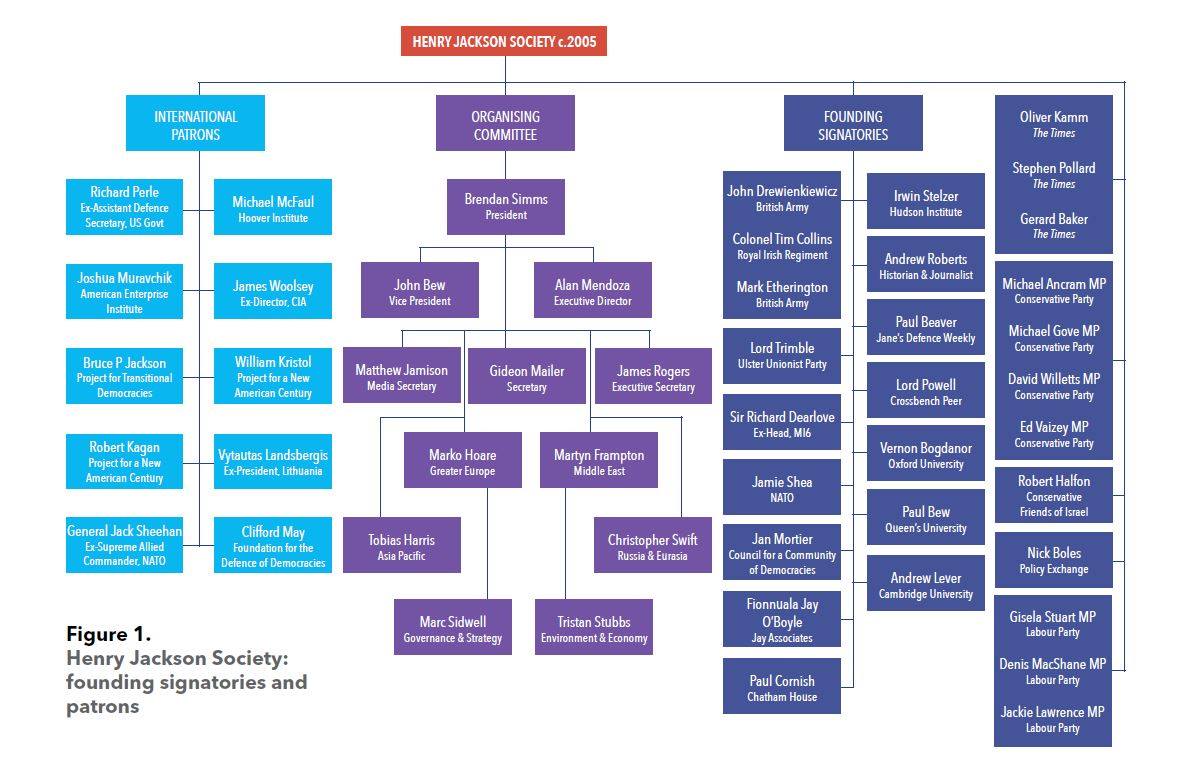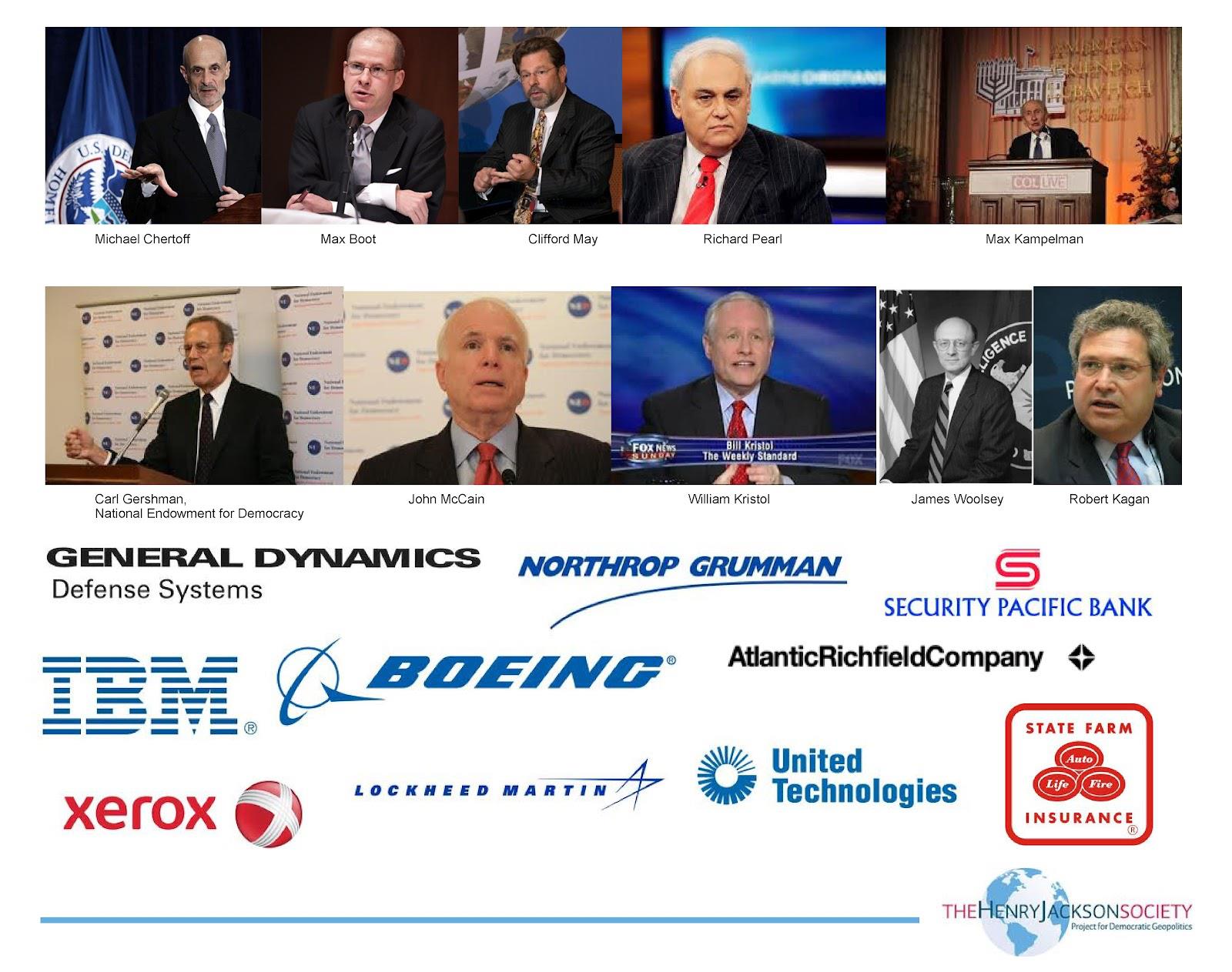 A noter également, le fait que les trois futurs patrons internationaux de la HJS, Richard Perle, James Woolsey et John « Jack » Sheehan, ont tous les trois été des membres du Defense Policy Board de Richard Perle en 2002.