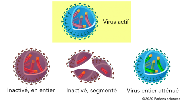 - Les vaccins inactivés sont obtenus en inactivant, ou en tuant, un agent infectieux entier qu’on rend inapte à la multiplication du fait d’un traitement physique ou chimique. Le vaccin inactivé contre l’hépatite A et la polio en sont des exemples.