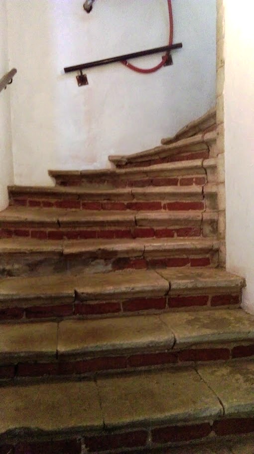 En contemplant les marches usées jusqu’à la corde de l’escalier tournant en pierre (Wentelsteen), l’un des rares vestiges du bâtiment d’alors qui a résisté à l’assaut du temps et du mépris, on imagine facilement les pas enthousiastes de tous ses jeunes élèves quittant leur dortoir situé à l’étage. Comme l’indiquent les registres des achats de la cuisine du Collège Trilingue, pour l’époque, la nourriture y est excellente, beaucoup de viande, de la volaille, mais également des fruits, des légumes, et parfois du vin de Beaune, notamment lorsque Erasme y est reçu.
