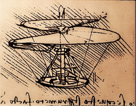 Si cet instrument, qui a la forme d’une vis, est bien fait, c’est-à-dire fait d’une toile de lin dont les pores sont bouchés avec de l’amidon [de façon a être le plus étanche possible], et si on le fait tourner rapidement, j’estime que cette vis fera son écrou dans l’air et qu’elle s’élèvera.