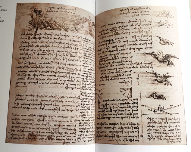 La chose qui frappe l’air a une force égale à l’air qui frappe la chose ; tu vois que le battement des ailes contre l’air fait soutenir l’aigle pesant dans l’air le plus haut et le plus raréfié (…) ; tu vois aussi l’air qui se meut sur la mer remplir les voiles gonflées et faire courir le navire lourdement chargé ; ce sont précisément les raisons pour lesquelles tu découvriras que l’homme, avec ses grandes ailes artificielles appuyant avec force contre l’air résistant, pourra le soumettre, et victorieux, s’élever au-dessus de lui. »