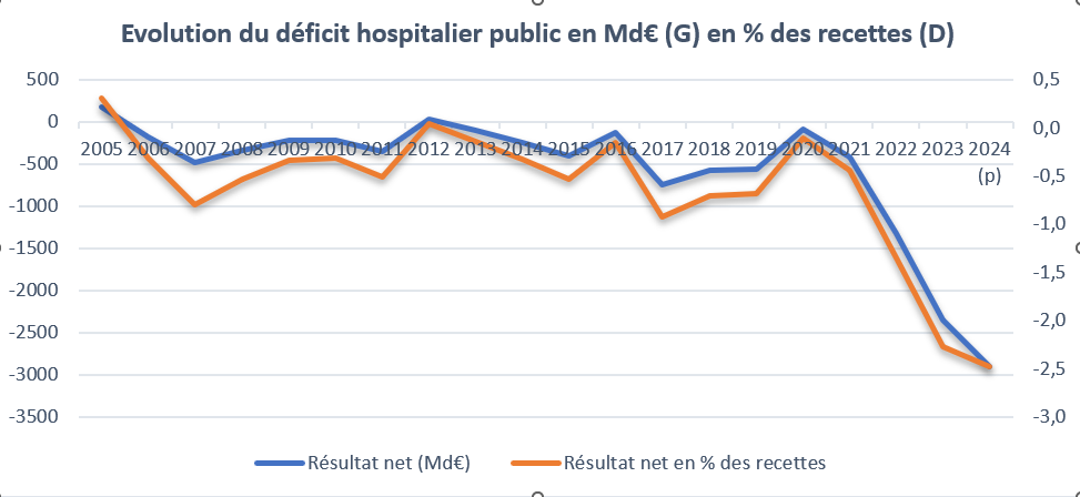 - DREES, https://drees.solidarites-sante.gouv.fr/publications-communique-de-presse/250724_ER_degradation-des-comptes-financiers-des-hopitaux-publics