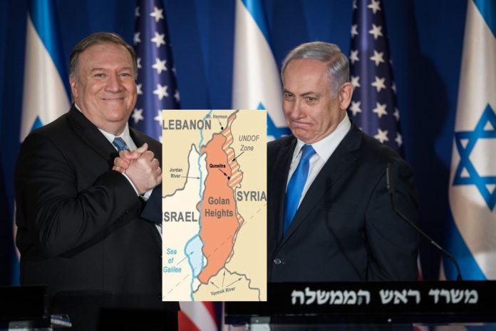 Si jusqu’ici on connaissait l’importance des hauteurs du Golan, un territoire syrien occupé par Israël depuis 1967, pour ses ressources en eau et, depuis deux ans, pour son potentiel en hydrocarbures, aujourd’hui, le cadeau fait à Israël est présenté comme une « riposte légitime » à la supposée volonté iranienne de vouloir dominer toute la région.