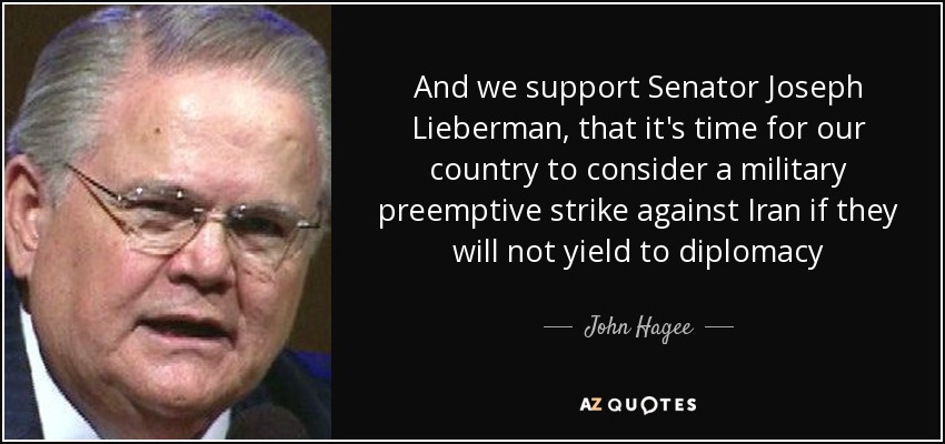 En 2006, John Hagee fonda la Christians United for Israel (CUFI), la plus grande organisation américaine des « sionistes chrétiens ». Depuis plus de vingt ans, ce « chrétien » appelle à une frappe préventive contre l’Iran.