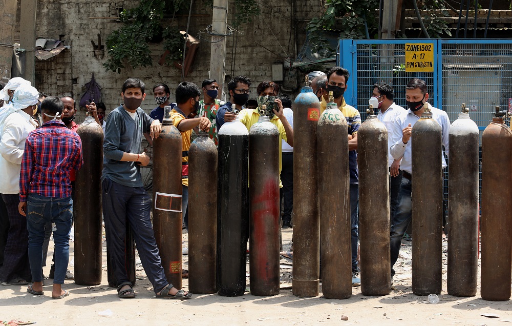 Comme vous le comprendrez aisément, tout le monde n’a pas les moyens de faire cela. Sur cette photo, vous voyiez les gens faire la queue pour remplir leur bouteille d’oxygène afin de sauver leurs proches. Une bouteille vide coûte aujourd’hui 1000 dollars et il en coûte 200 pour la remplir de 10 mètres cubes d’oxygène. Tout le monde ne peut se l’offrir. Seul un infime pourcentage de la population peut se le payer, les autres sont condamnés à mourir.