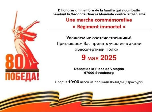 - Strasbourg : le vendredi 9 mai, à 10h sur la place de Vologda