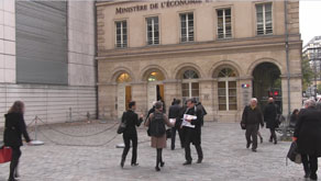 1000 exemplaires de la pétition ont aussi été distribués à Bercy, devant l’entrée du ministère de l’Economie et des Finances. Les militants ont été reçus avec entrain par les employés du ministère de Moscovici, où l’austérité provoque un taux de suicide des plus élévés.