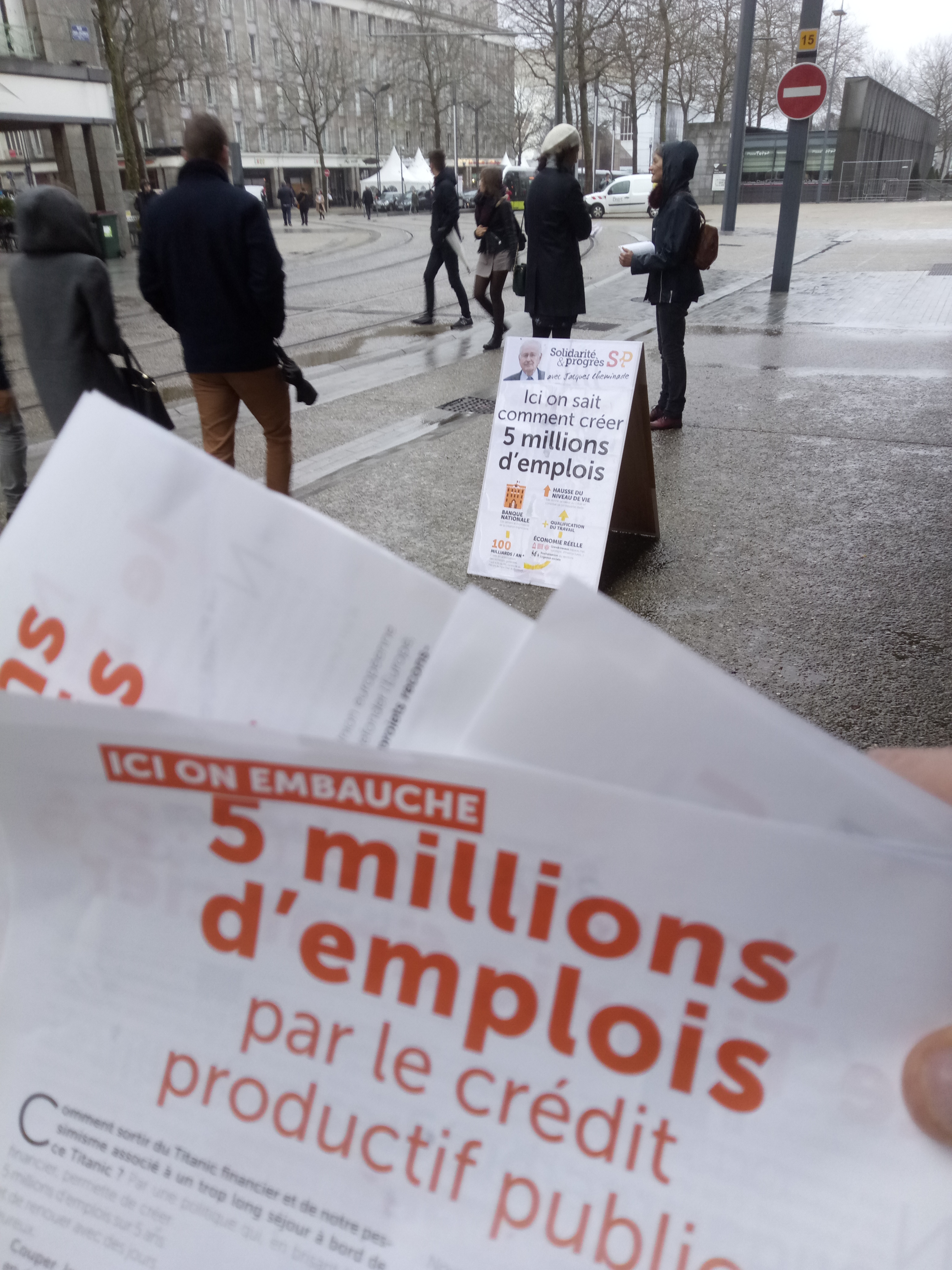 Vendredi 21 décembre, distribution du tract Cinq millions d’emplois grâce au crédit public à Brest, aux abords de la mairie.
