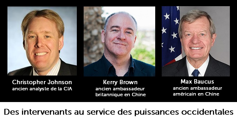 Pendant l’heure et quart que dure le film, une vision du Président Xi Jinping très différente de celle que peut avoir une grande partie du monde, est distillée par des porte-voix « objectifs » d’institutions occidentales. Parmi eux, Kerry Brown, ancien ambassadeur britannique en Chine, Max Baucus, ancien ambassadeur américain en Chine, Christopher Johnson, « ancien » analyste de la CIA. Puis des spécialistes de think-tanks tels que Nadège Rolland du Nation Bureau of Asian Research (NBAR) travaillant directement avec Washington, Jean Pierre Cabestan de l’Université baptiste de Hong-Kong, François Godement, du European Council on Foreign Relations ECFR et quelques autres.