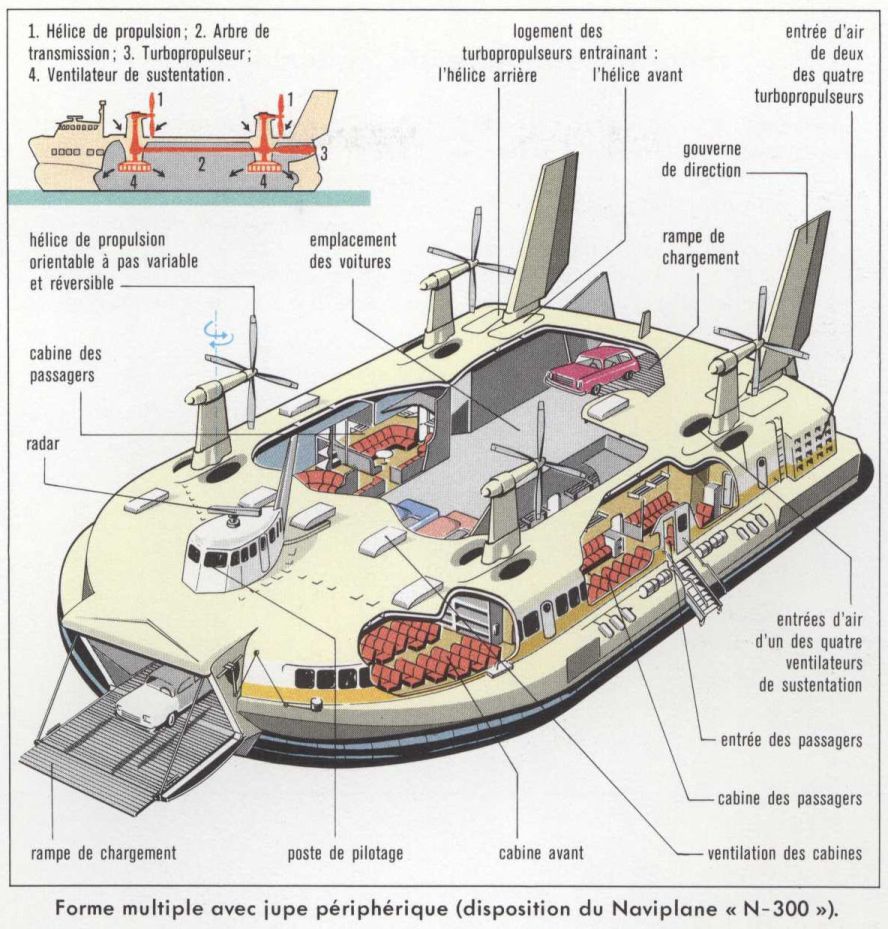 Pour le fonctionnement spécifique des naviplanes, je vous renvoie sur l’excellent site Aérotrain et Naviplanes.