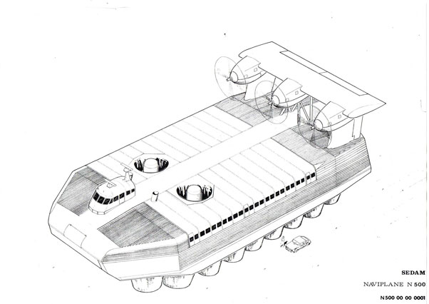 A la même époque, la SEDAM s’installa à Pauillac et y étudia un modèle plus grand et plus performant, le N-500, long de 50 mètres, large de 23 mètres et avec une charge utile de 85 tonnes, le plus grand aéroglisseur du monde.