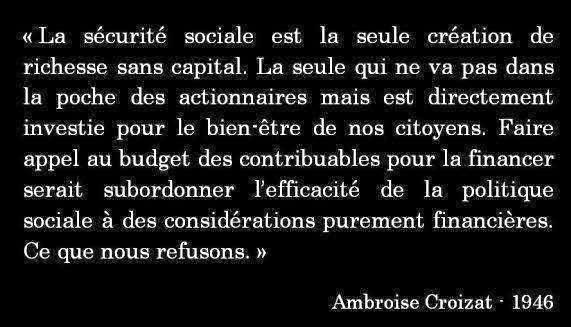 vivre sans l’angoisse du lendemain, de la maladie ou de l’accident de travail, en cotisant selon ses moyens et en recevant selon ses besoins.