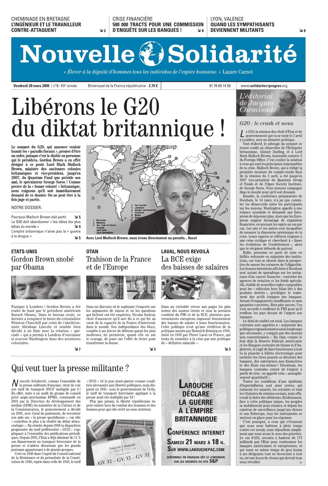 Accueil > Nouvelle Solidarité > Nouvelle Solidarité n°06/2009