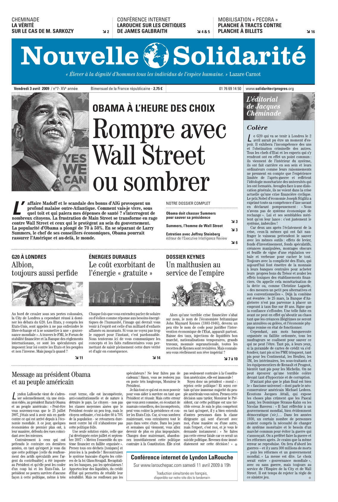 Accueil > Nouvelle Solidarité > Nouvelle Solidarité n°07/2009
