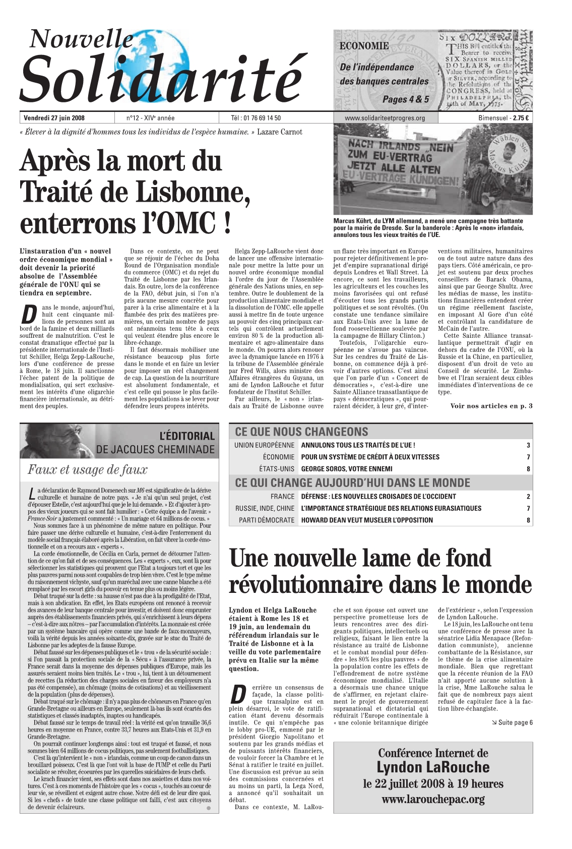 Accueil > Nouvelle Solidarité > Nouvelle Solidarité n°12/2008