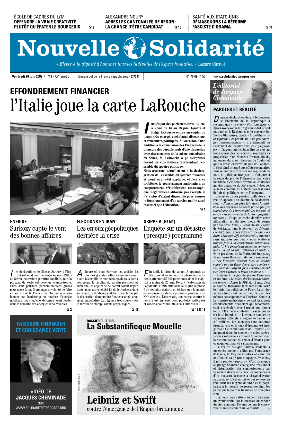 Accueil > Nouvelle Solidarité > Nouvelle Solidarité n°13/2009