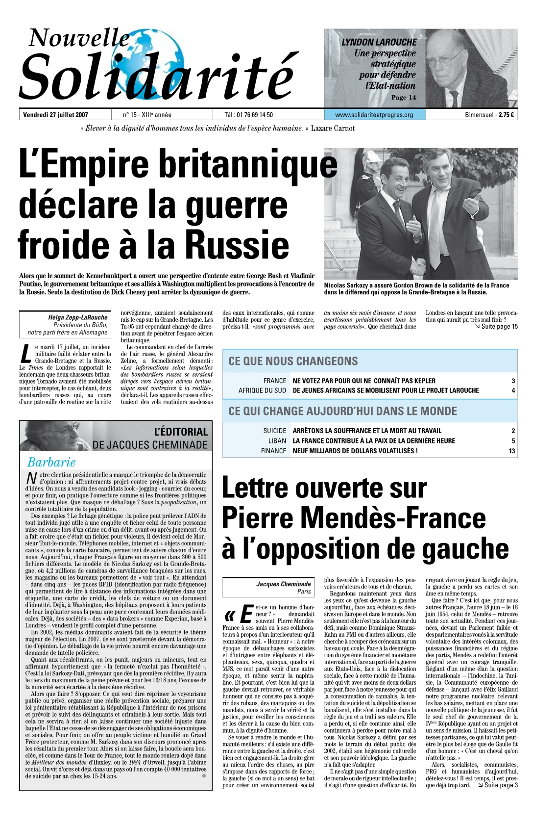 Accueil > Nouvelle Solidarité > Nouvelle Solidarité n°15/2007